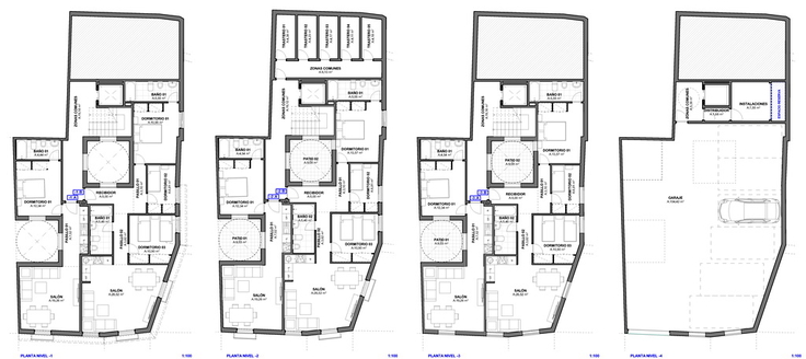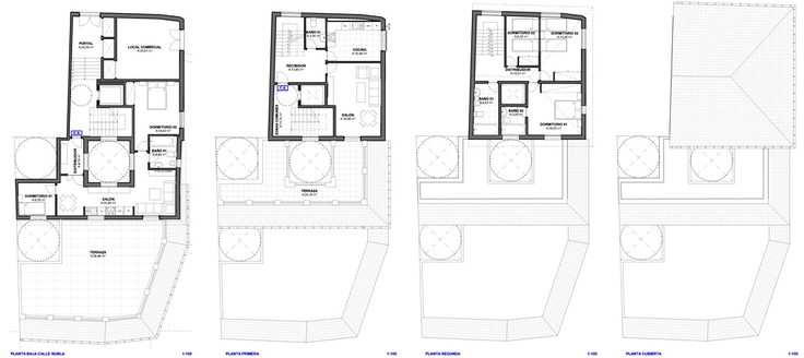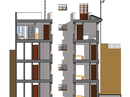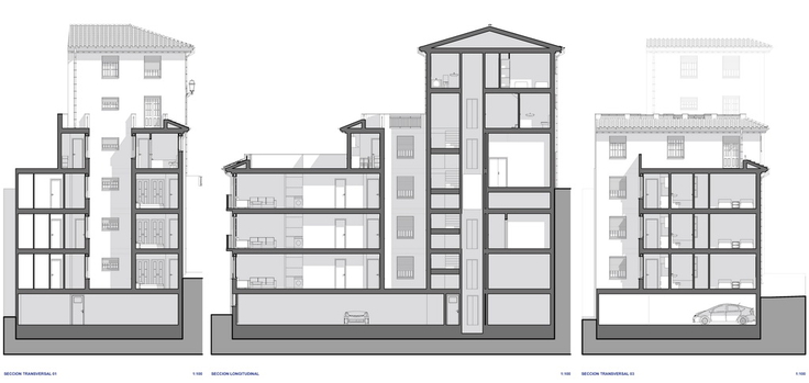 La actuación pretende ser lo más respetuosa posible con su entorno, por lo que, al tener fachada a varias calles, los volúmenes se escalonan según la altura de los edificios de cada una de ellas.