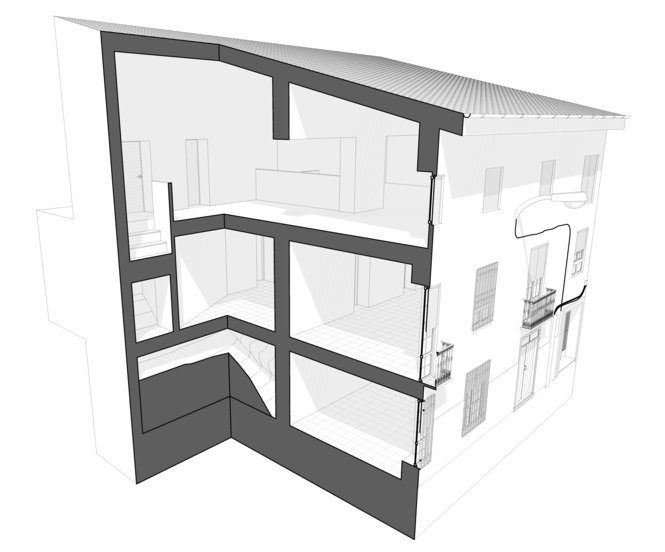 Rehabilitación de vivienda en mal estado estructural, tanto forjados como cubiertas, procediendo a la demolición parcial de estos elementos para su sustitución y adecuación de las plantas. La vivienda se situa en un lugar extremadamente sensible de la ciudad, en la plaza, junto la Ermita de la Virgen de Gracia y la Fuente de la Reja, derrame natural del acuifero subterráneo y origen del sistema hidráulico de la Huerta de Pegalajar.