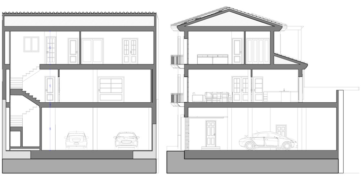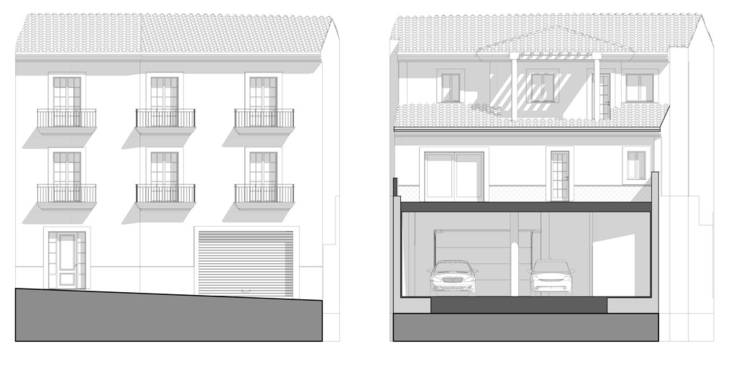 Vivienda Unifamiliar de nueva planta, de tres plantas de altura, con zona de estancia diurna en planta primera, dormitorios en planta segunda y garaje en planta baja.