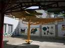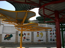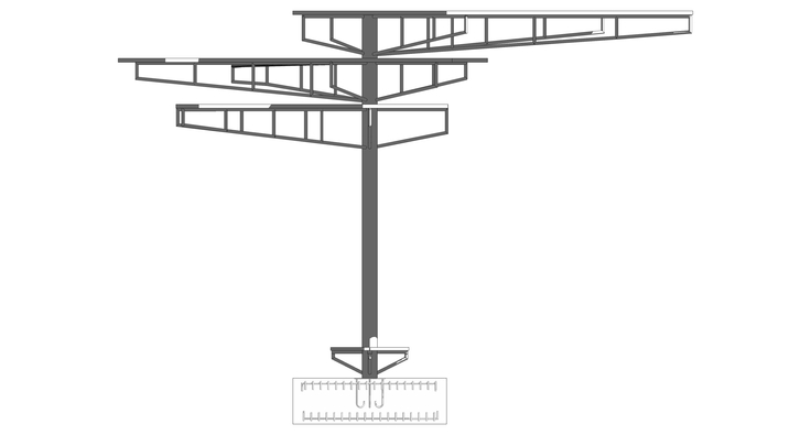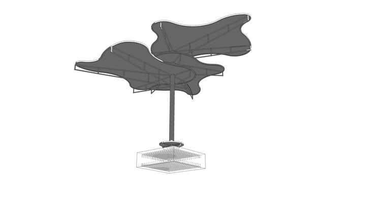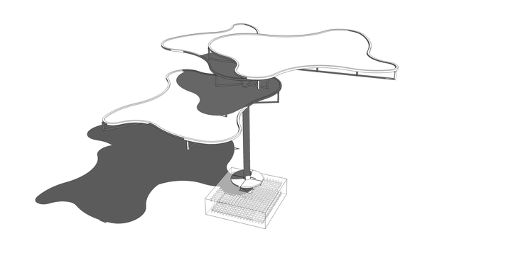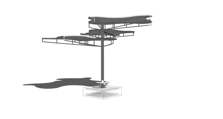 Diseño y desarrollo de mobiliario urbano en el patio interior del colegio, con objeto de dotar de bancos y elementos de sombreo a los niños. Se plantean tres elementos de sombreo que ocupan parcialmente el patio a manera de árboles, con plataformas a distintas alturas sustentadas por brazos metálicos.