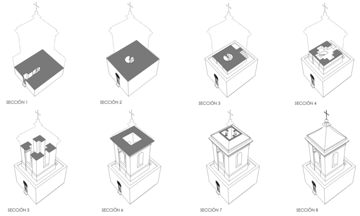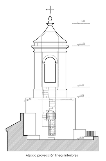 Este proyecto ha consistido en limpiar toda la piedra y devolver la cohesión perdida mediante la reposición del llagueado con mortero de cal similar al existente, hacer una reconstrucción volumétrica de los elementos de la cornisa perdidos y acondicionar el interior de la torre para que sea de nuevo visitable.