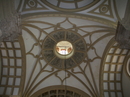 La bóveda nervada del crucero, decorada en la parte superior por casetones donde se enmarcan escenas de la pasión y abierta al exterior a través de una esbelta linterna, es soportada en sus ángulos por cuatro semipilares típicamente vandelvirianos, destacando en ellos el detalle del esquinazo de tres aristas como elegante tránsito a los nervios. La linterna soporta su cúpula sobre seis columnas exentas de basa y coronadas con capiteles toscanos. Para elevar la altura, sobre los mismos se presentan zapatas decoradas con diversos motivos: espejos, el escudo de la Orden de Santo Domingo y las armas de Mejía y Fonseca.