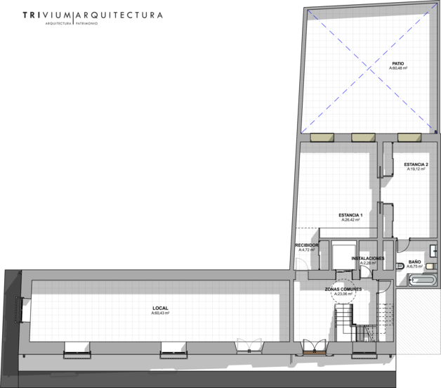 Se apuesta en la recuperación de un edificio histórico, con una bonita y señorial imagen, adecuándolo para albergar unas modernas y funcionales viviendas. En planta baja, los locales comerciales cierran el programa.