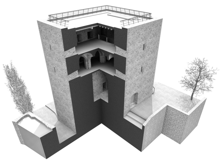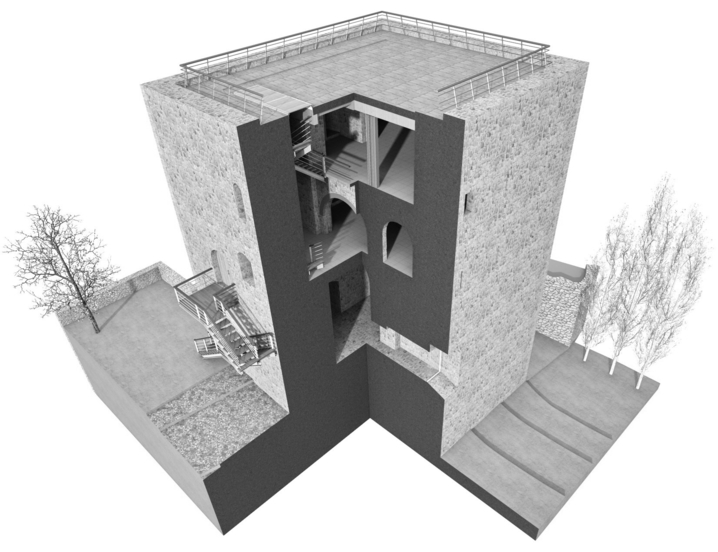 La intervención propuesta plantea reparación de los paramentos del torreón, para lo que se propone: